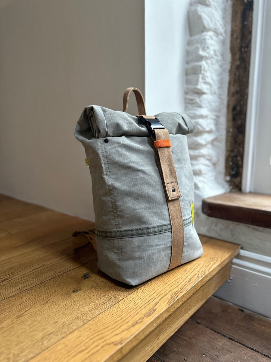 RUCKSACK | Green cotton canvas with beige cotton tape